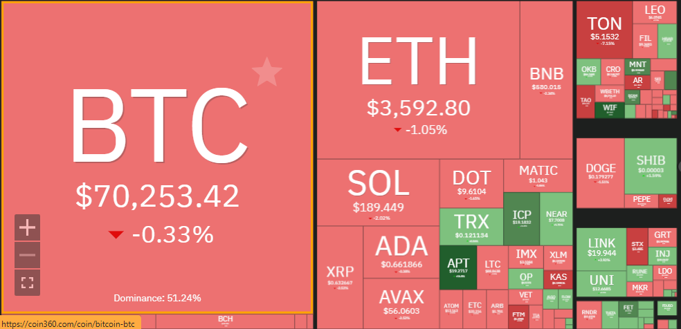 Notable cryptocurrencies with huge potential are IOTA, Injective, Fetch.ai, Ethereum, and TONCOIN, which are seen as potential game-changers in the crypto space. Meanwhile, Bitcoin’s recent surge past the $70,000 mark further ignites the market’s enthusiasm.