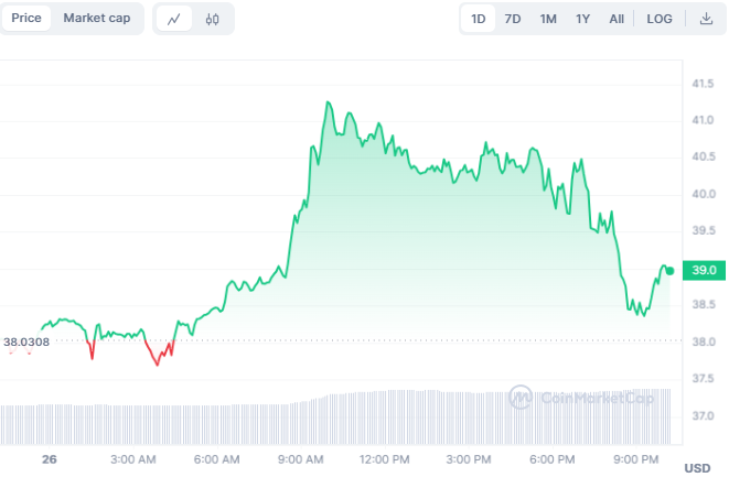 Market reception to Injective’s advancements has been positive, evidenced by the INJ token’s appreciable growth. The token’s price surge to $40.35 and a remarkable trading volume highlight a bullish sentiment among investors.