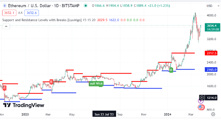 Ethereum’s resilience is particularly noteworthy, overcoming short-term resistances and setting the stage for a sustained bullish trend. Technical analysis reveals Ethereum’s successful breach of key resistance levels, converting them into potential support zones.