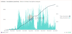 This significant accomplishment, recorded just days before the highly anticipated Bitcoin halving event, underscores the growing interest and innovation within the Bitcoin ecosystem. Launched in January 2023, Ordinals inscriptions have rapidly gained popularity, representing a key development in the Bitcoin network’s capabilities.